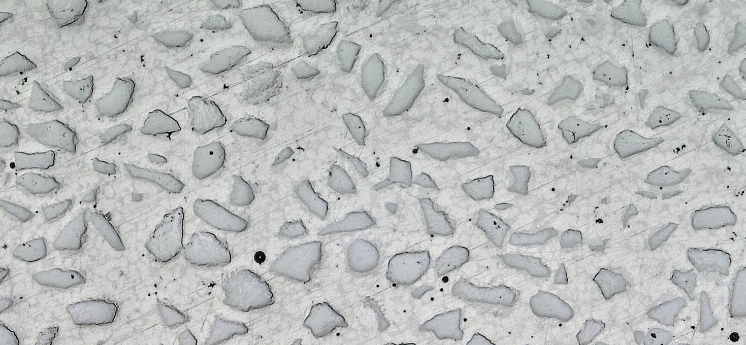 Colmonoy® 7541-55F, with 55% tungsten carbide is an ideal protective coating for the most severe abrasive conditions. It is typically used on equipment such as stabilisers, steering pads, and sleeves. It is particularly ideal as a protective coating for steering pads. In this application, the steering pad is subject to extreme wear conditions as it is made to press against the side wall to deflect the direction of the drill chain. Colmonoy® 7541-55F contains cast and crushed tungsten carbide particles with average hardness values around 2200HV whilst the average deposit hardness ranges between 50-60HRC.