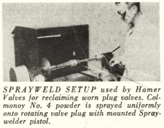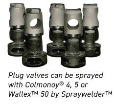 This application is still relevant today and included in our latest Oil & Gas brochure as a featured Valve application. Plug valves can sprayed with Colmonoy® 4, 5 or Wallex™ 50 by Spraywelder™.