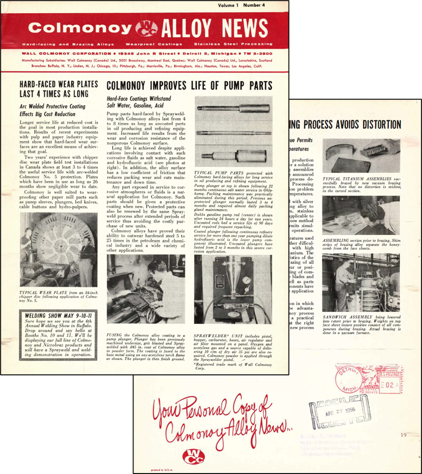 New parts should be given a hardfaced Colmonoy® protective coating. Protected parts can also be renewed or repaired by the SprayweldTM process after extended periods of service thus avoiding the costly purchase of new units.
